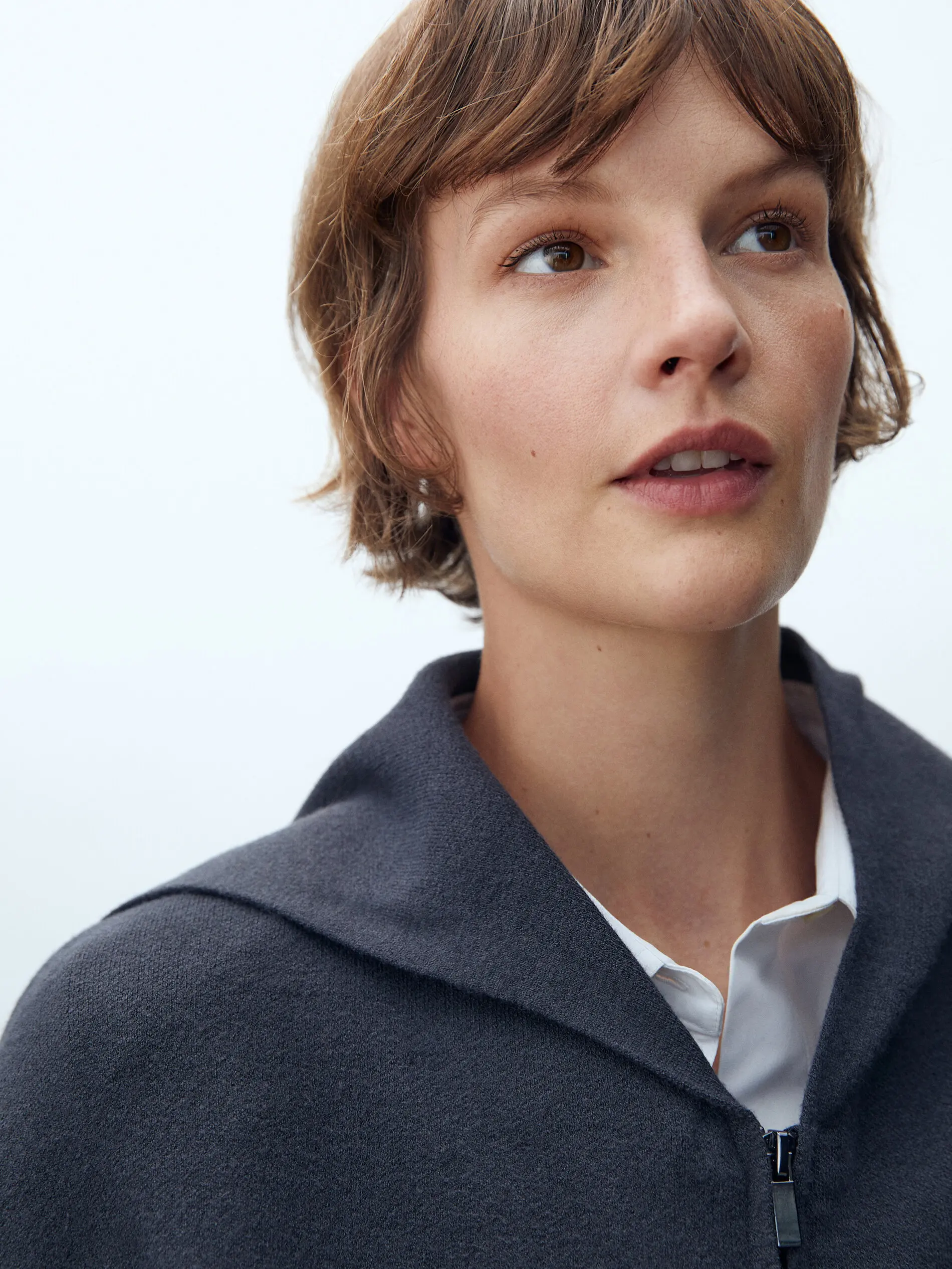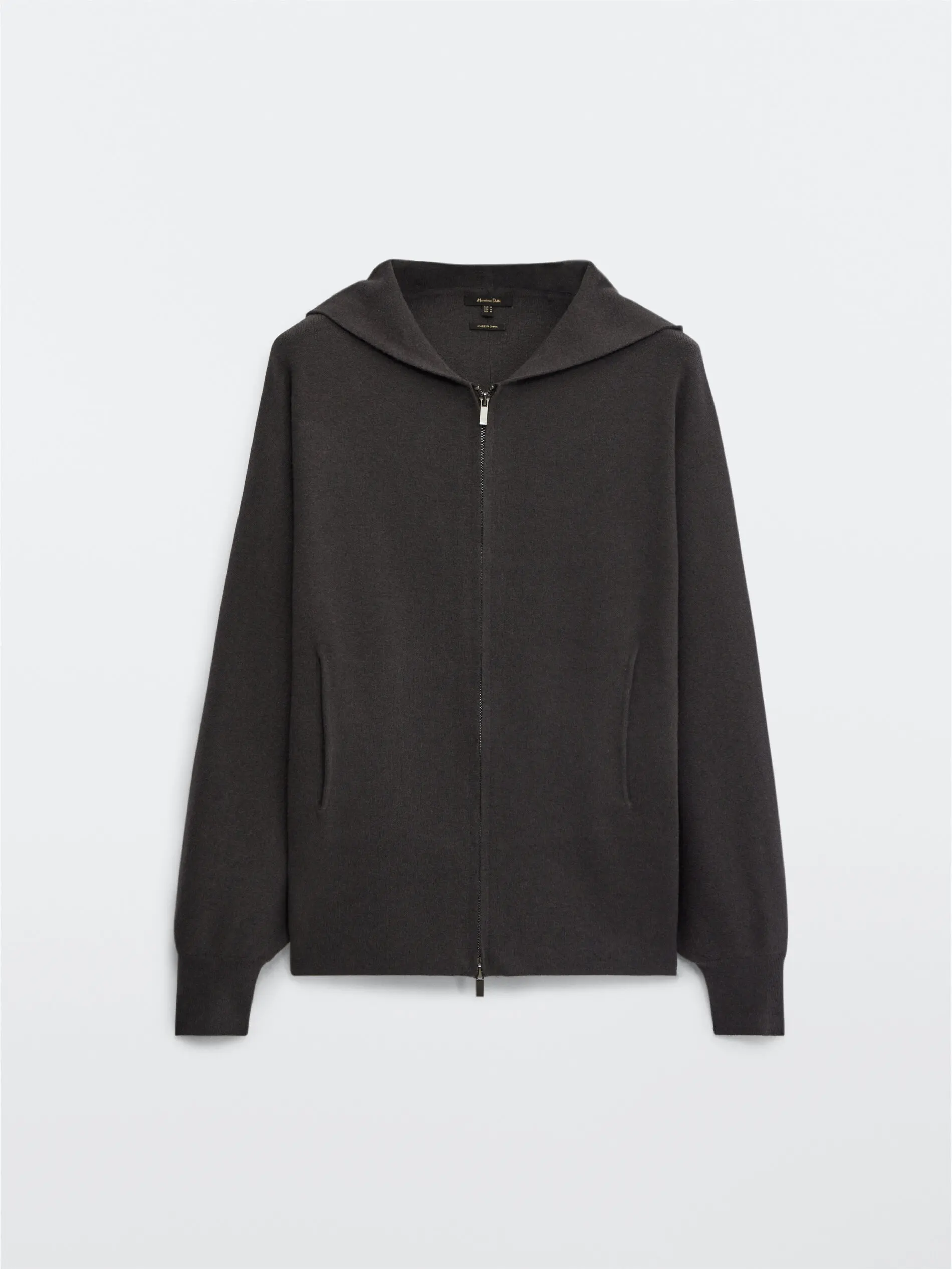 What sets the Zipper Knit Cardigan apart is its blend of functionality and contemporary style. The slight stretch in the fabric ensures all-day comfort while allowing freedom of movement. The hood adds a cozy touch, making it perfect for those cooler days when you want a little extra warmth. With its modern design and solid color, this cardigan is versatile enough to become a staple piece in your closet.