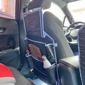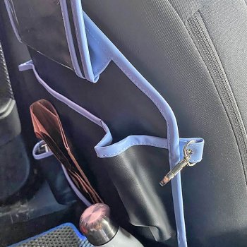 I love this blue color! I’ve been using this car organizer for about three weeks now. It perfectly protects the back of the seat from dirt. There is enough space to put toys, bottles, napkins, some food for the trip. The tablet holder is conveniently placed so that kids don’t have to hold it in their hands all the way. Thank you