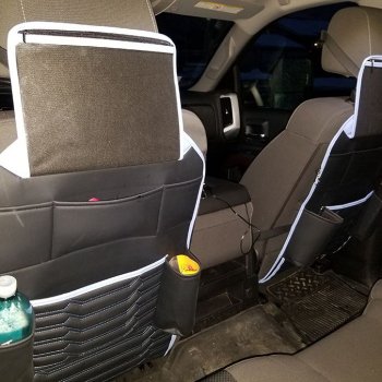 Amzing organizer for the seat back. Lots of pockets so kids can easily get what they need. Convenient pocket for tablet or phone. I recommend ordering!