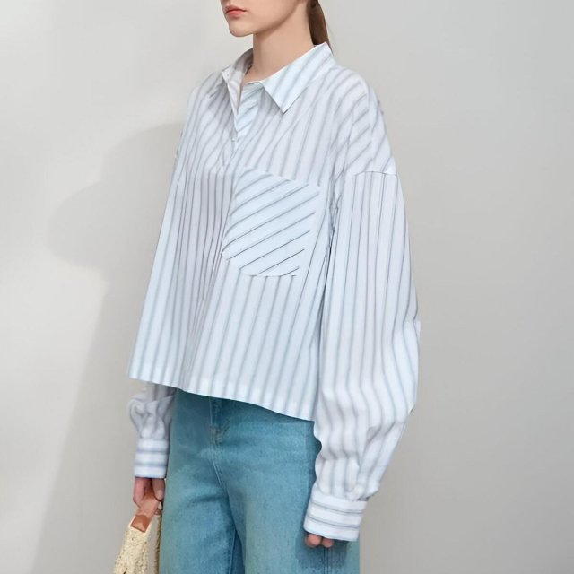 Upgrade your wardrobe with this stunning denim patchwork striped blouse, designed to bring effortless sophistication to your everyday style. Combining timeless stripes with a chic denim touch, this long, loose-fit blouse is the perfect blend of classic and modern. Whether you’re dressing up for the office or keeping it casual, this versatile piece adds a refined yet relaxed vibe to your look.